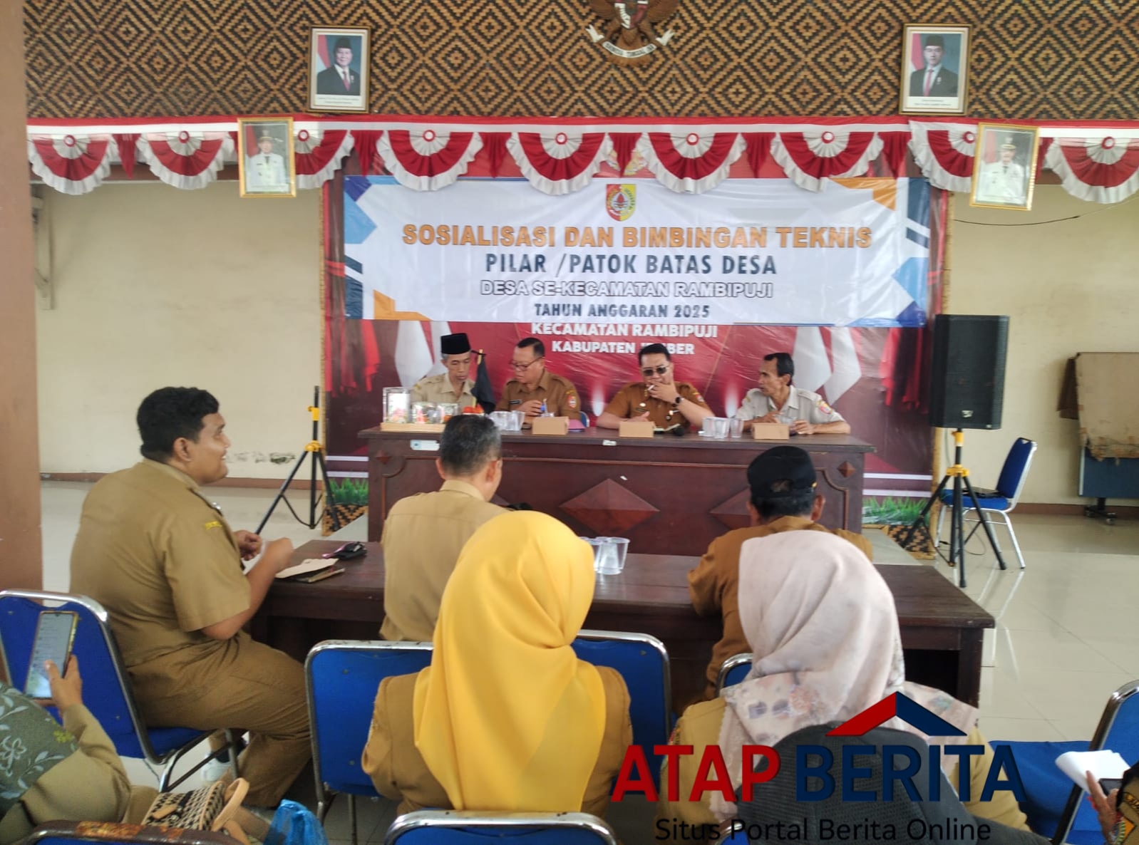 Hadir dalam acara Bapak Camat Rambipuji Bpk. Roni Herman Baza, AP, Sekcam, Kasipem Kecamatan Rambipuji dan perwakilan Dinas Pendapatan Daerah ( Dipenda ). Ditambah kehadiran Bapak Kades dan Sekdes juga Kasun se Kecamatan Rambipuji, Diperkirakan sekitar 40 orang hadir dalam acara Sosialisasi dan Bimbingan Teknis Pilar/Patok Batas Desa se Kecamatan Rambipuji. Senen 22 Desember 2025.