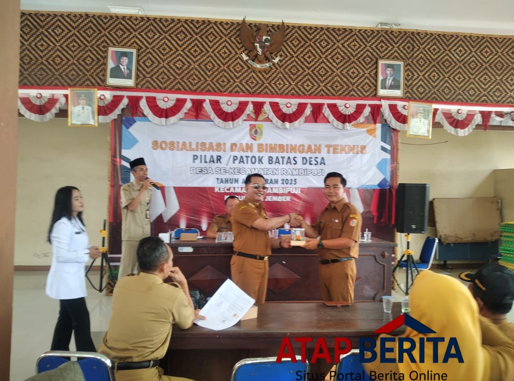 JEMBER, Atapberita.i-news – Sosialisasi dan Bimbingan Teknis Pilar/Patok Desa se Kecamatan Rambipuji tahun anggaran 2025, dilaksanakan oleh Bapak Camat Rambipuji. Acara diadakan di aula kecamatan Rambipuji Jalan WR.Supratman No.70, Rambipuji, Kabupaten Jember.